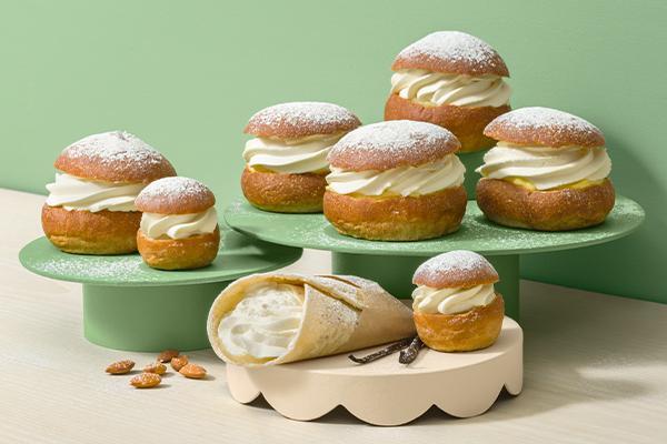”Alla våra semlor görs i butiken”, förklarar Jonathan Kugelberg, marknadsansvarig på PLOQ. ”Vår personal jäser, bakar av och monterar semlorna på plats i butik och det känns så rätt att vi kan erbjuda kunderna kvalitets-semlor i alla våra butiker längs väg.”